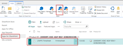 Open the SharePoint app catalog. Open the link https://{your-tenant-name}-admin.sharepoint.com/_layouts/15/online/ManageAppCatalog.aspx. Please replace “{your-tenant-name}” with the tenant’s name