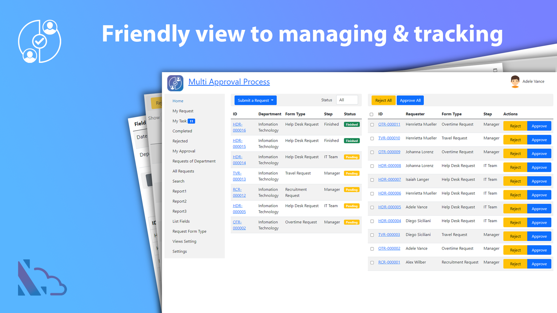 The Multi Approval Process is the add-in in SharePoint. It supports the organization and creates a lot of approval systems without coding. It allows the creation of unlimited approval systems, unlimited workflows, and changing anything in the system for consistency with your organization. End users easy to create & manage the request. It provides all information to help the manager makes the approval. It is also a SharePoint Hosted add-in, all data of the add-in saves on your SharePoint site. Very easy to use, configuration.