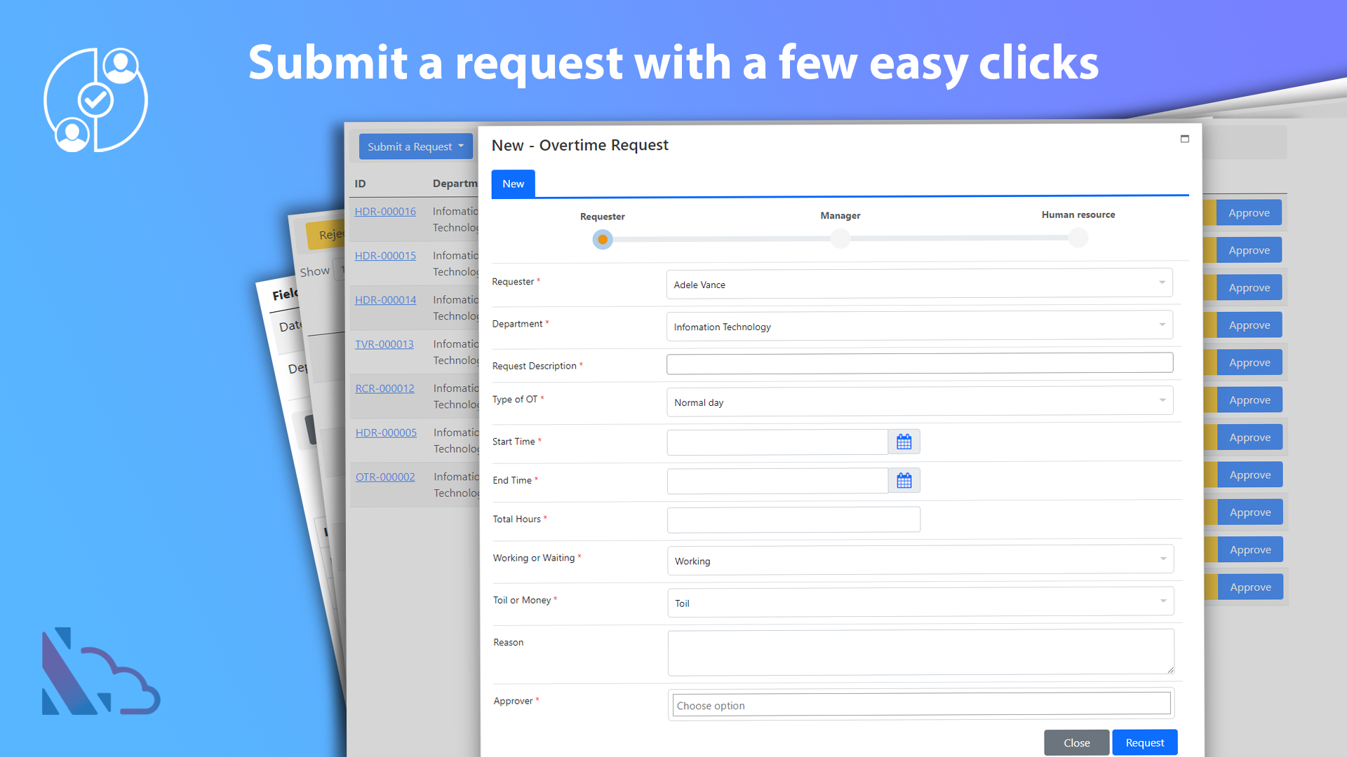 Request, track, approve and manage the requested. Easy to use, configured, and very flexible
