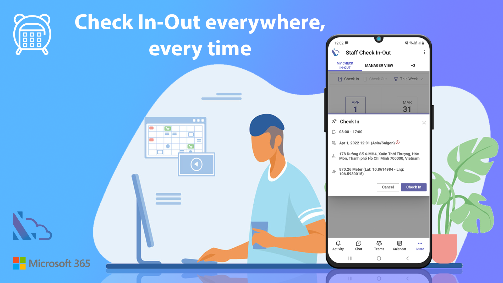 Staff check in-out where staff can check in-out with a location (GPS) and other details